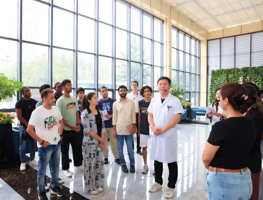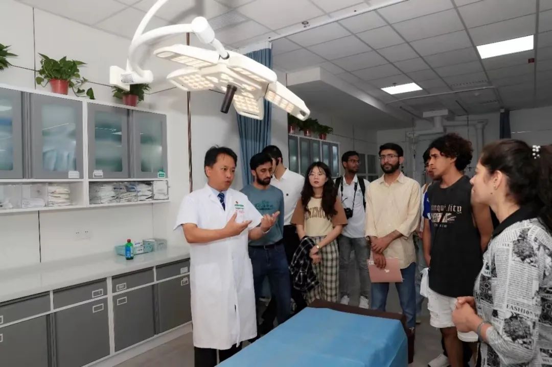 8月9日下午,同学们先后参观了和平医院的精准健康管理中心、急诊医学科、生殖遗传科、重症医学科和院史馆。通过沉浸式参观交流,学生们感受到医院的特色医疗和以人为本的服务理念。医院温馨的病区环境、先进的医疗设备让留学生们羡慕不已。随后,同学们来到学术交流中心,与长治医学院校长王金胜、医学院及医院相关职能部门负责人开展交流座谈。通过王金胜教授的介绍,学生们加深了对长治医学院以及附属和平医院的了解,认识到他们为区域医疗做出的积极贡献。