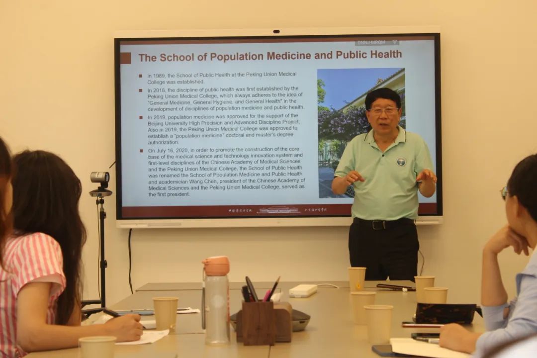 师生进行了充分交流。通过范金虎教授与胡尚英教授的介绍,学生们加深了对北京协和医学院以及肿瘤医院概况和发展历史的了解,认识到北京协和医学院作为我国最高医学研究机构和最高医学教育机构,为我国现代科学医学体系的建立和发展做出了重要贡献。随后流行病室老师带领留学生们沉浸式参观了肿瘤医院流行病学研究室,通过展板介绍,让学生们更加直观地感受到了中国肿瘤防控的发展历史与成果。