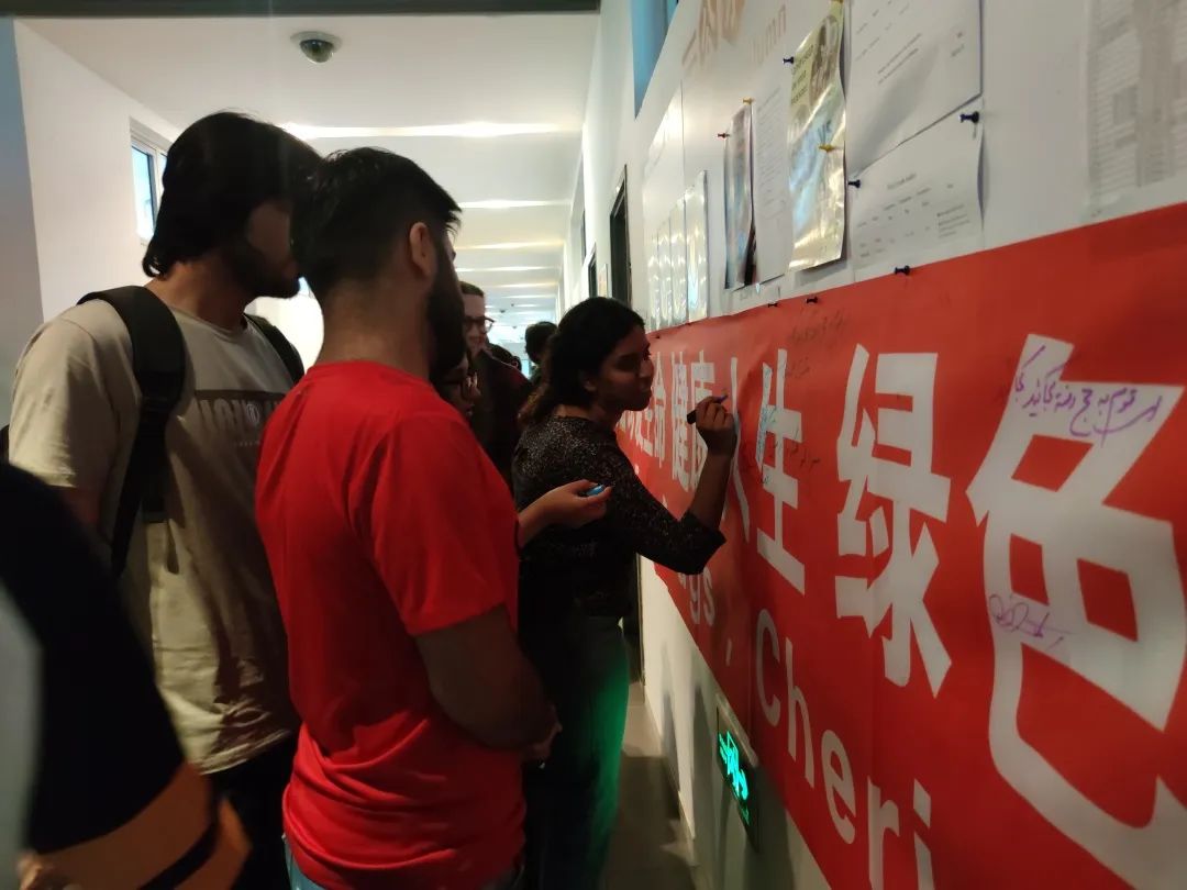 活动中,91麻豆以宣传展板的形式向留学生详细介绍了毒品的类别及危害,提高留学生对毒品的防范意识。同时,91麻豆组织留学生在印有“远离毒品 珍爱生命 健康人生 绿色无毒”的条幅上进行签名活动。留学生踊跃地签上了自己的名字并留写了对于平安及健康的美好祝愿。
