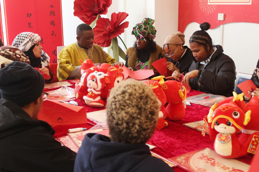 教师们一起,同来自伊朗、斯里兰卡、巴基斯坦、也门等国家的50余名留学生共同欢度新春佳节。这些活动不仅丰富了留学生的寒假在校生活,还让留学生们感受到了中国的新春氛围,领略了传统文化的魅力。