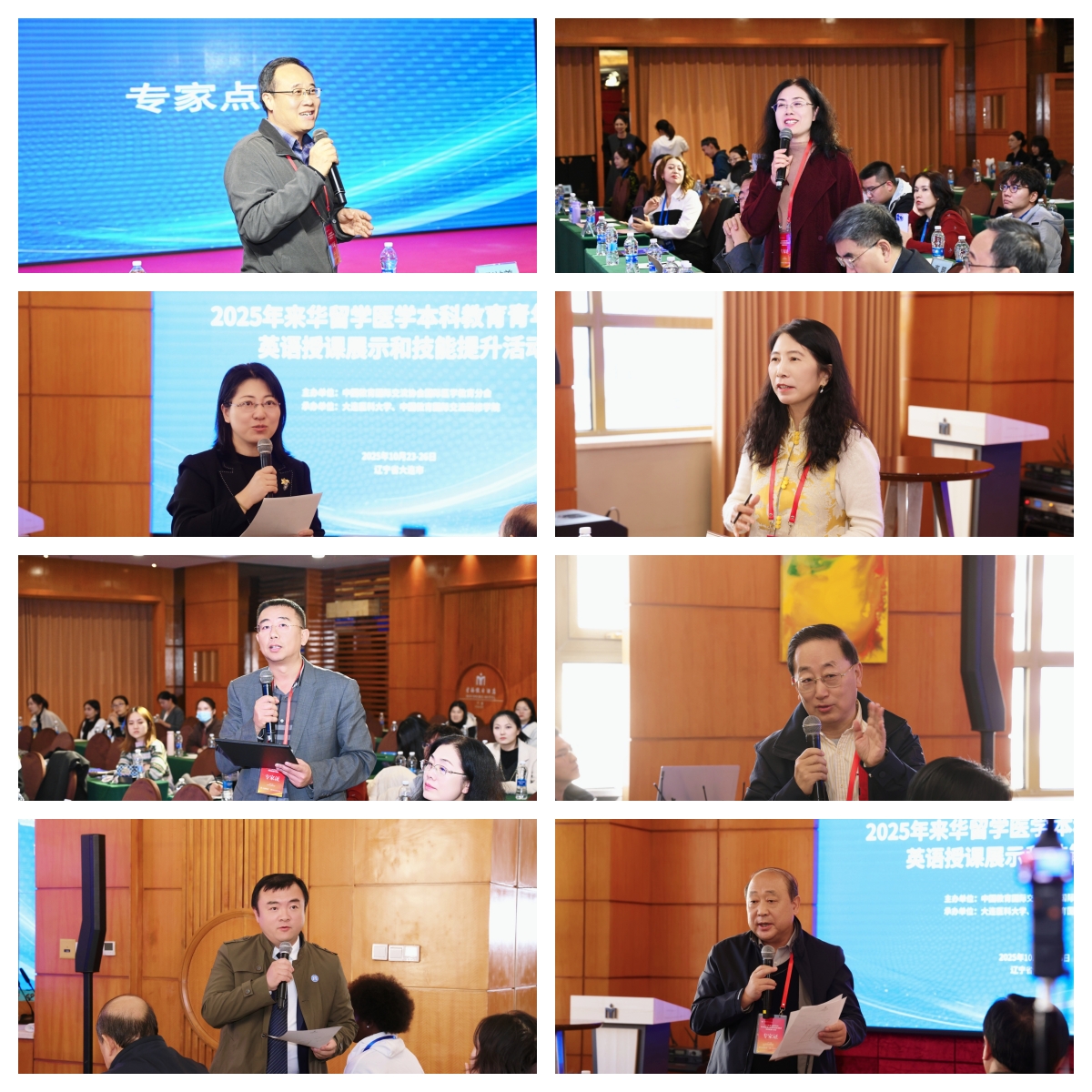 在英语授课展示环节,教师们巧妙融合临床案例,生动模拟课堂互动,充分运用启发式教学,并介绍了学科前沿进展,营造出生动而富有活力的课堂氛围。他们凭借流利的英文表达、扎实的专业功底、精湛的教学技艺以及多样化的教学手段,赢得了现场阵阵热烈的掌声。随后,来自浙江大学、山东大学、安徽医科大学、南方医科大学、天津中医药大学、南京医科大学以及我校的专家对授课展示进行了专业点评与指导。