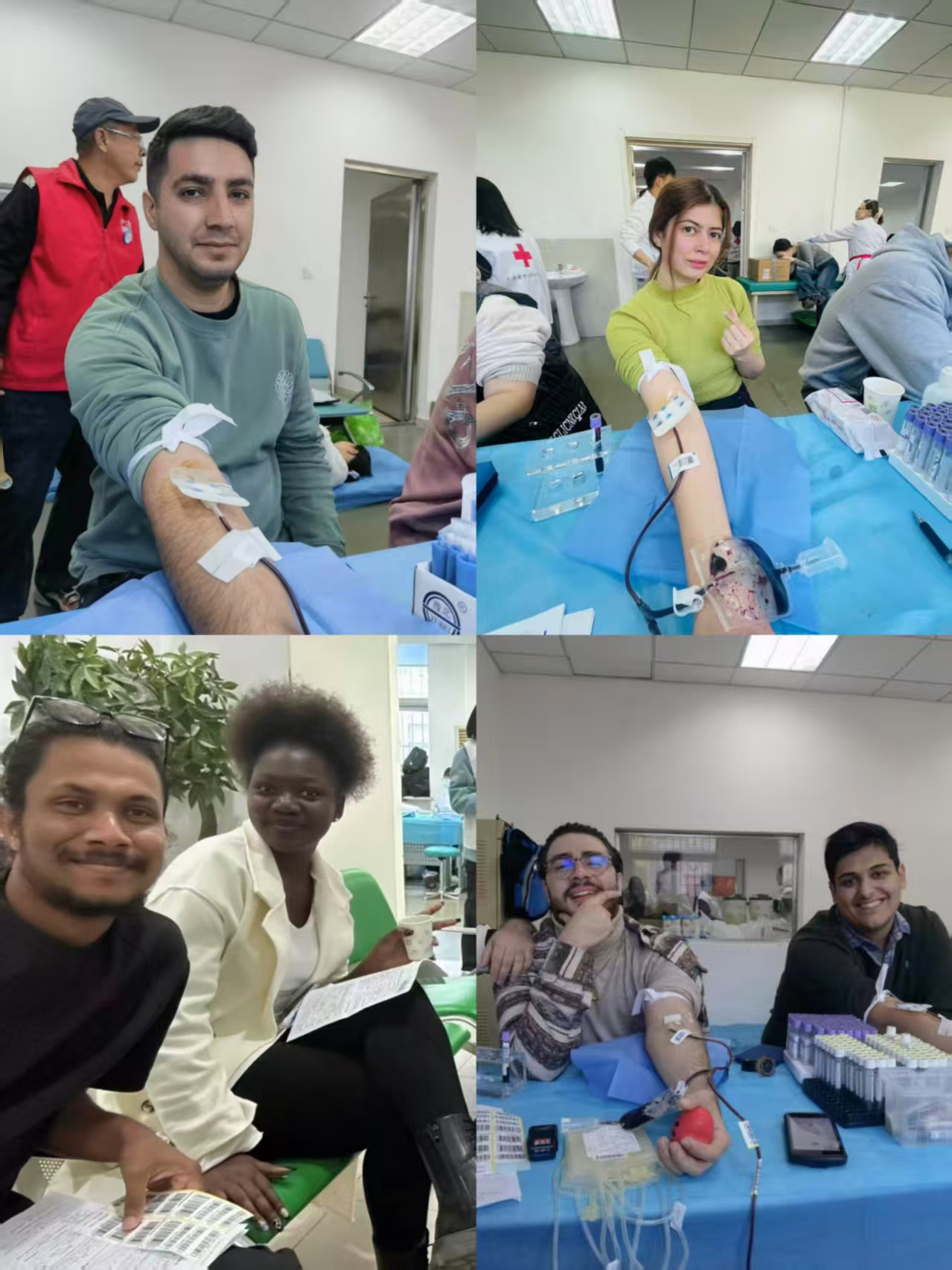 此次是我院组织的第二次留学生无偿献血活动,这不仅是一次公益行动,更是我校中外文化交融、培育学生社会责任感的生动体现。未来,我校将继续搭建更多公益平台,鼓励中外学子共同参与社会服务,让爱心在校园里传递,让友谊在奉献中升华,以实际行动践行社会责任,传递温暖与正能量。
