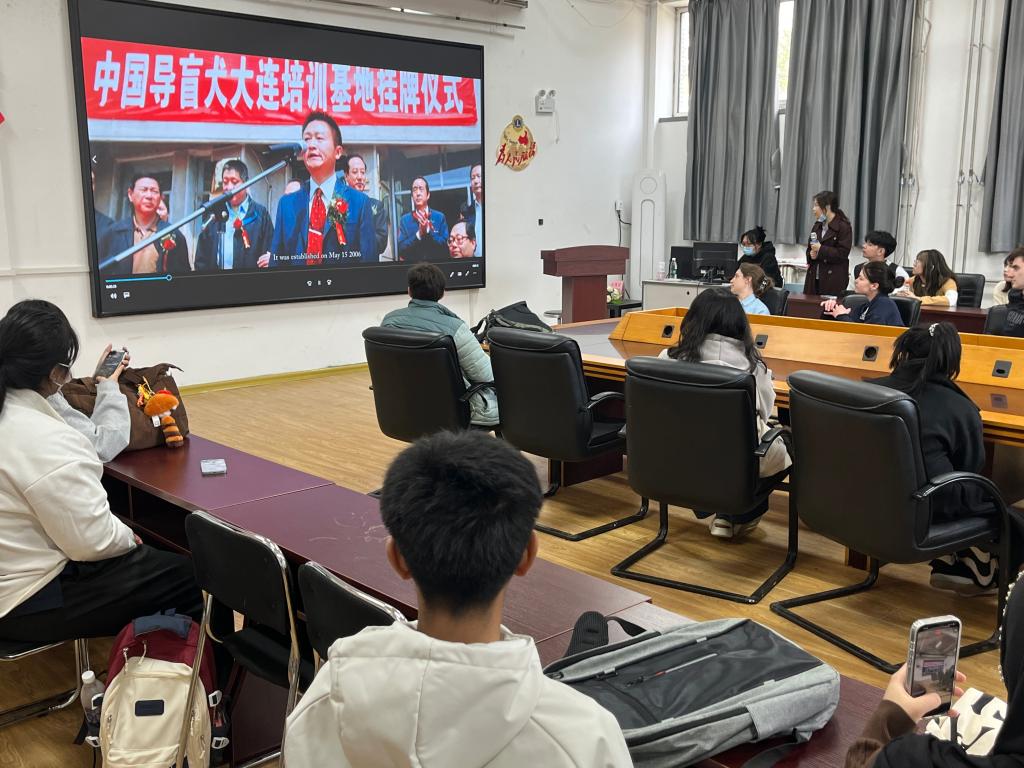 组织新生、俄罗斯短期交流项目学生前往导盲犬培训基地开展实践研学活动。来自泰国、俄罗斯、斯里兰卡、苏丹等国家的50余名医学生们近距离认识导盲犬、学习助残知识、体验无障碍出行。